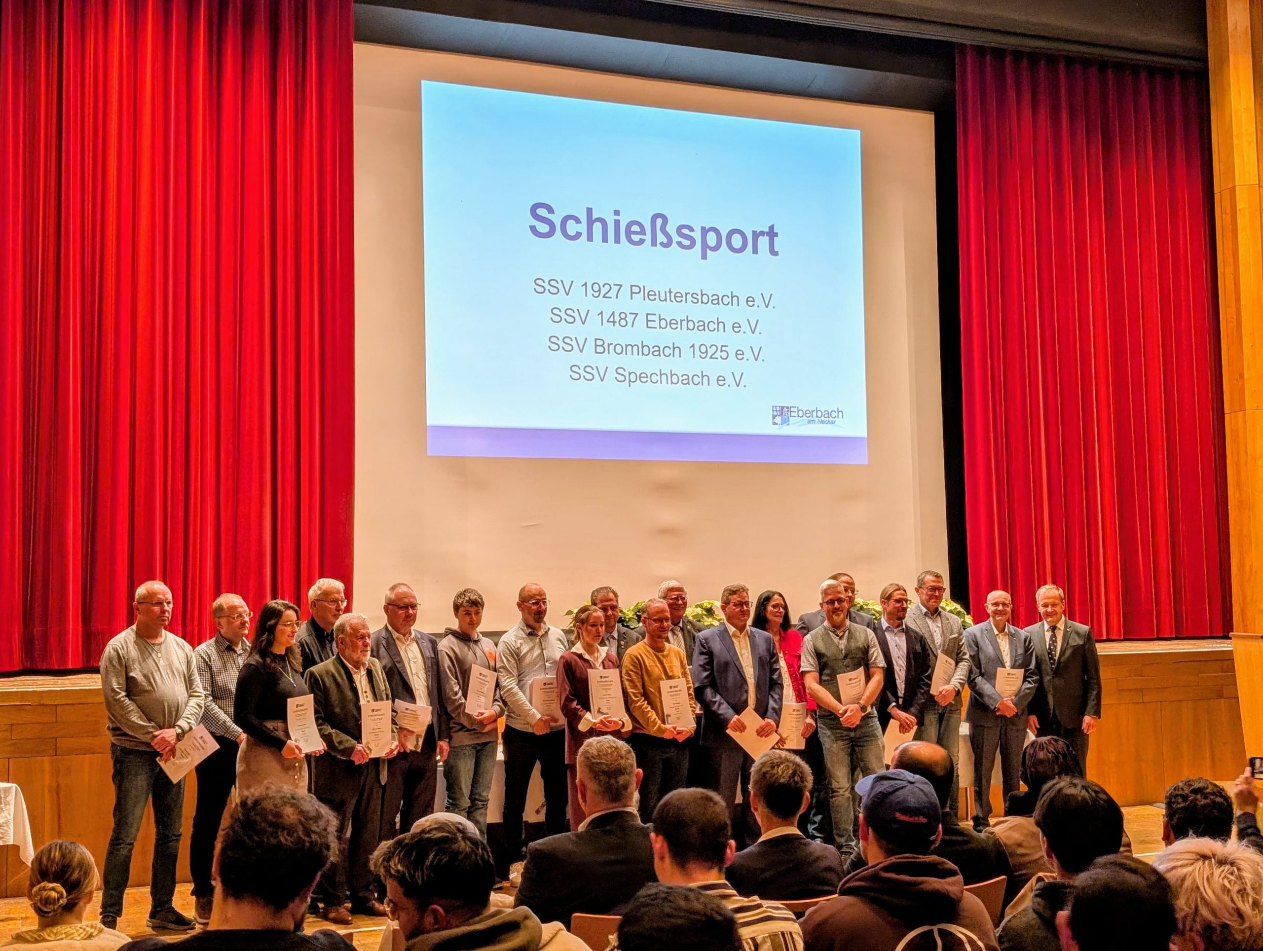 Bei der Sportlerehrung der Stadt Eberbach am Freitag den 12.Dezember wurden wieder viele Schützen-/innen mit Medaillen in Bronze und Silber für ihre Herausragenden Leistungen im Sportjahr 2024/2025 im Einzel und Mannschaftserfolgen geehrt.